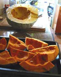 The batch is also my first vegetable beer. Michelle’s a fan of spiced/pumpkin ales, so I put together a squash ale recipe for her that I also named in her honor. “Squash; My Wife. Spiced Ale” is better without the punctuation, but she hasn’t seen the name yet. Baking the squash was a bit of a challenge given the size of our oven. Plus, the ambercup squash, while delicious, was hard as hell to cut open. The sweet meat squash was also quite good and much easier to work with. Because the squash preparation took so long, I had to push the brew date back. and refrigerated the squash overnight.