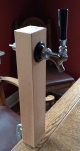 Anyway, it worked well, looked nice, and was fun to make with some scrap I had laying around. I re-sawed some of the CVG fir to glue to the sides so that it would be CVG all the way around. It seemed a shame to have only 2 pretty sides. I didn’t finish it – and I probably should given the wet nature of beer – but unfinished fir just looks so lovely. Personally, I like it better with the short tap-handle. Next step will be to make a matching handle.