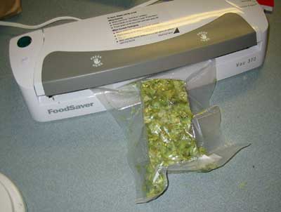 I bought a vacuum sealer yesterday so I could cut and bag my fresh hops without sacrificing their freshness to the freezer. The sealer I bought worked like a charm, and did an awesome job of compressing the hop packages. The most impressive part was how quickly I was able to slice up the 5 packages of hops and seal them in brewing quantities for later.