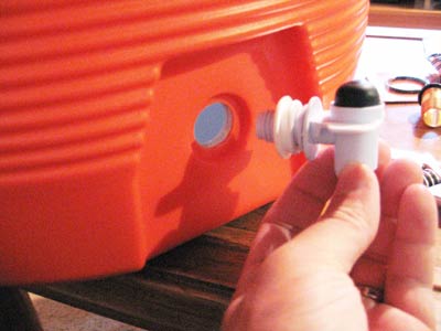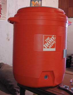 I’m using a rubbermaid 10 gallon drink cooler from Home Depot (notice the logo), though this can be done with a smaller or rectangular cooler as well