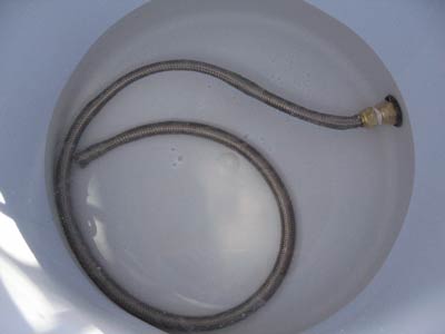 Nice work, doing that myself today. Does the braided stainless steel have holes in it, and is it sealed at the end?