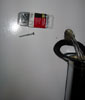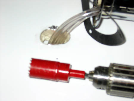 3.Using a 1-inch keyhole drill bit, drill one or two holes overlappingeach other and run the beer lines through the freezer door. Tape offthe edges of the sheet metal for added protection against wear from rubbingon the beer line.