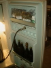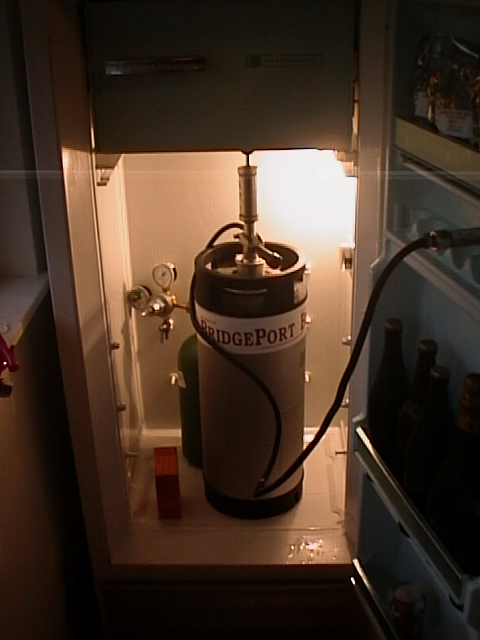 2. Get a refrigerator. This keeps the ones cool. The size of your kegerator depends on what you want from it. I got one big enough for two kegs and a gas tank, or one keg, one carboy and a gas tank. A commercial keg would also fit. I got mine from a used Appliance shop. The classifieds are also a good place to look. You might get a great deal, especially if you live in a college town. The appliance store delivered it for us. If you move it yourself, don’t lay it down. Clean it out before you start using it. duh…